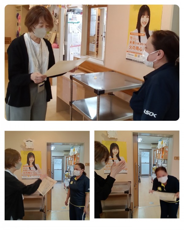 細やかなケアと元気な笑顔で支えてくれる職員に金子ホーム長から表彰状授与致しました!