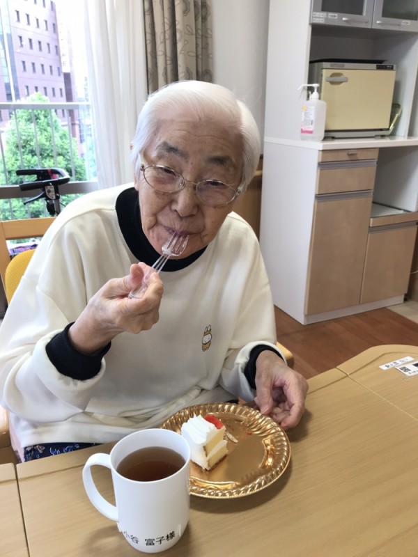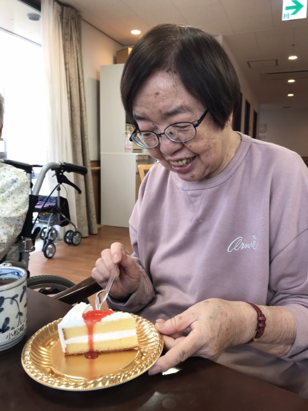 昨日、15時のおやつにショートケーキが提供されました♡