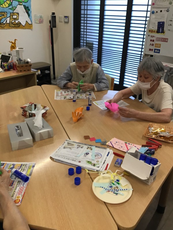 お次は七夕といったら短冊!!ということでご利用者様方にお願い事を書いて頂きました(*^^*)