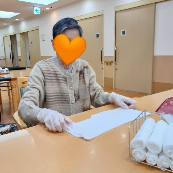 先日、スタッフの仕事のひとつである“おしぼり作り”を