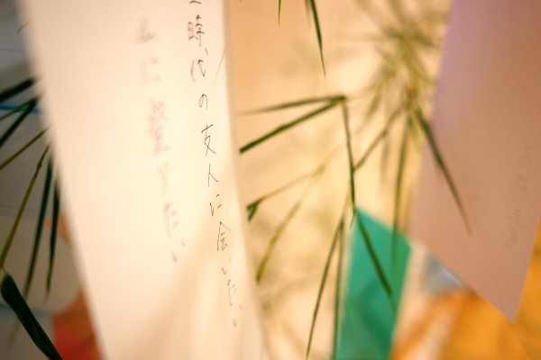 七夕に向けて短冊を書いてもらっています。