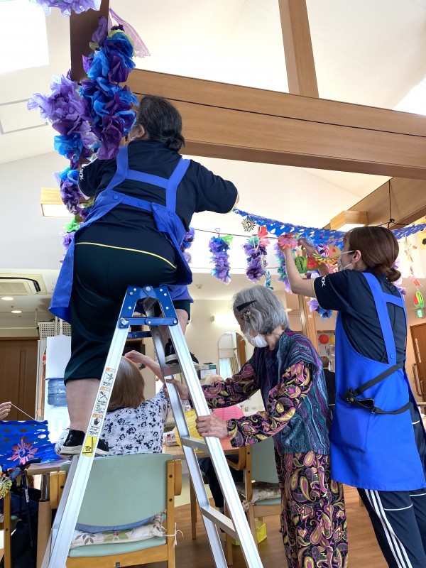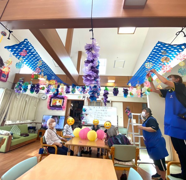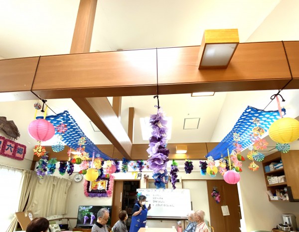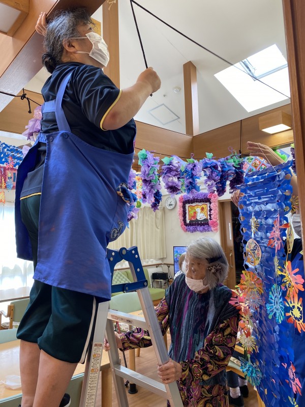皆さんで提灯を広げたり、飾る場所はどこにしようかとワイワイと楽しく行いました♫