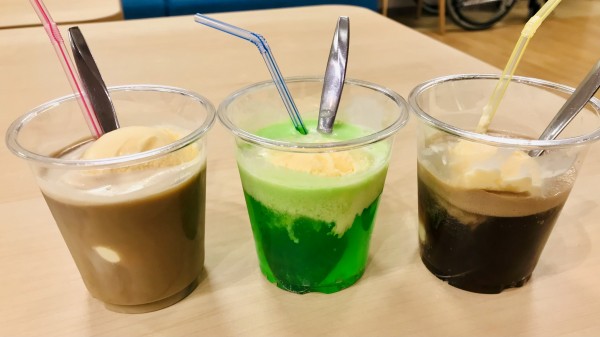 暑さに負けず頑張ってくださる皆さんの為に本日のおやつは3種類のフロートをご用意致しました(*´∀`)♪