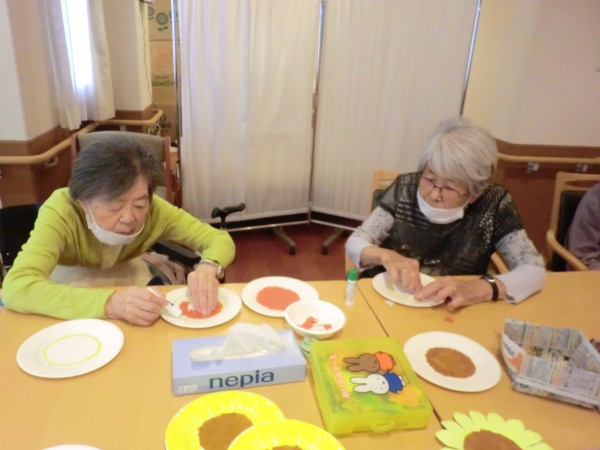 これからが夏本番といったところでしょうか。そんな夏に向けて飾りつけの作品作りのレクが行われておりました。