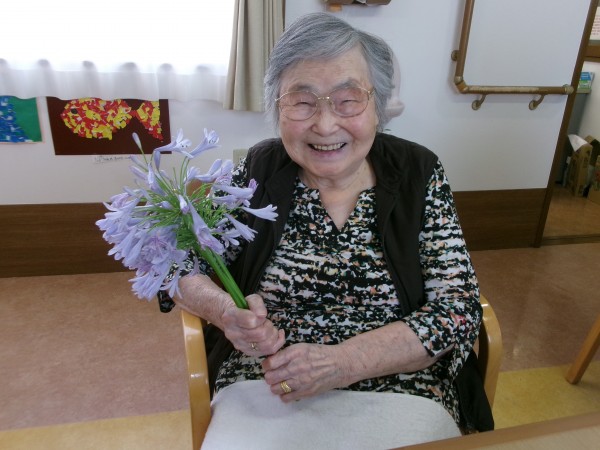 ホームに戻ってから、近隣の方が下さったアガパンサスの花で