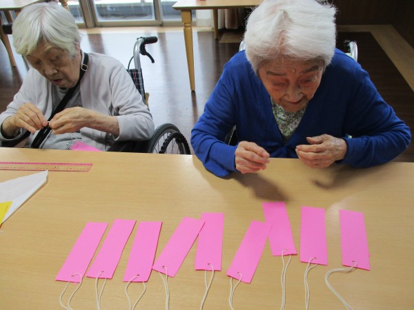 短冊を飾るための穴開けや、糸を通す作業も手伝って頂きました!