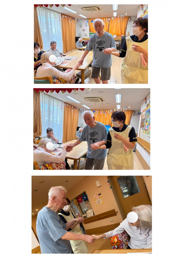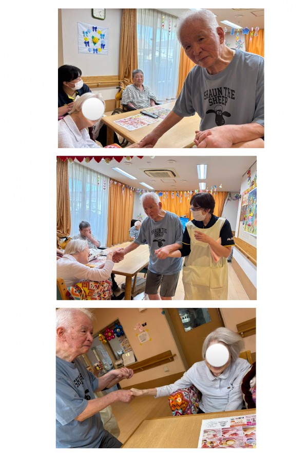 ご入居者様同士が手を取り合い、心温まる場面が見られました(๐^╰╯^๐)♬ルンルン♬