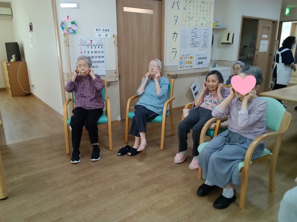 体も動かしながら、お口の運動を行いました。