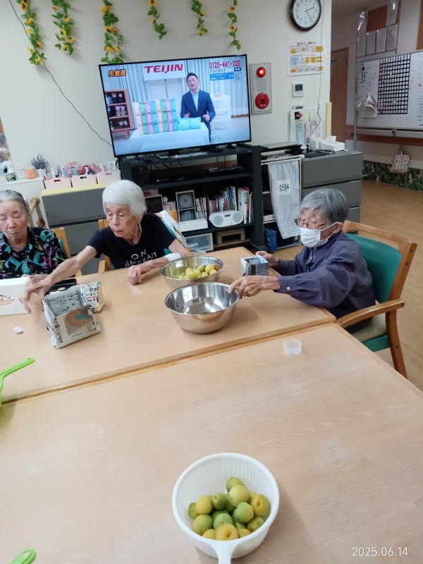 全部で3キロ分の梅の下処理をしましたよ~。皆さんお疲れさまでした(^_^)