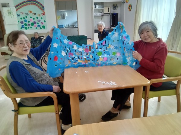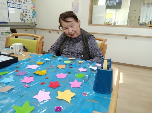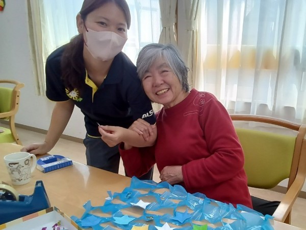 『もうすぐ七夕だね』と言いながら行う制作レクも認知症ケアのひとつ☺