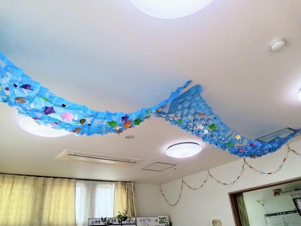 大きな天の川や吹き流しを作りました☺