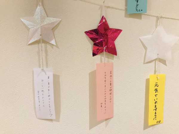 1階のご利用者様&スタッフにも短冊にお願い事を書いてもらいました(*'▽'*)
