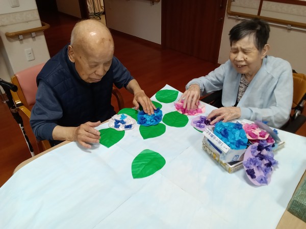 梅雨も明けてしまいそうですが、『あじさい』の壁画がやっと完成したのでご紹介します(*^^)v