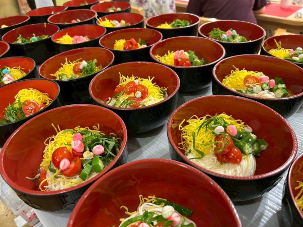 また、七夕にはそうめんを食べる風習があります。これは、織姫が機を織る姿にちなんで細く長いものを食べることで、裁縫や手芸の上達を願うという意味があるそうです。