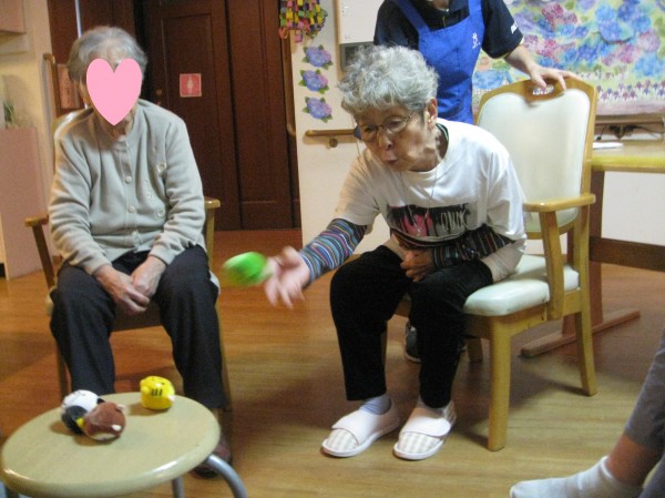 椅子の上にお手玉を投げてみてくださいね。