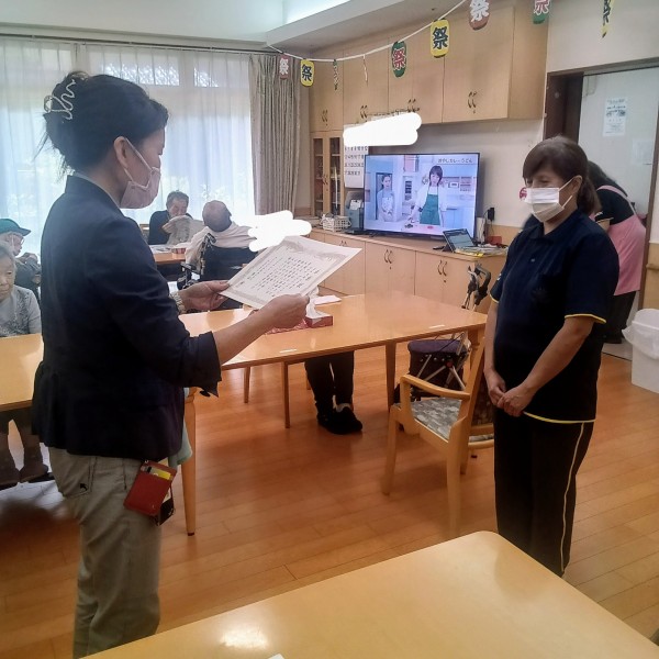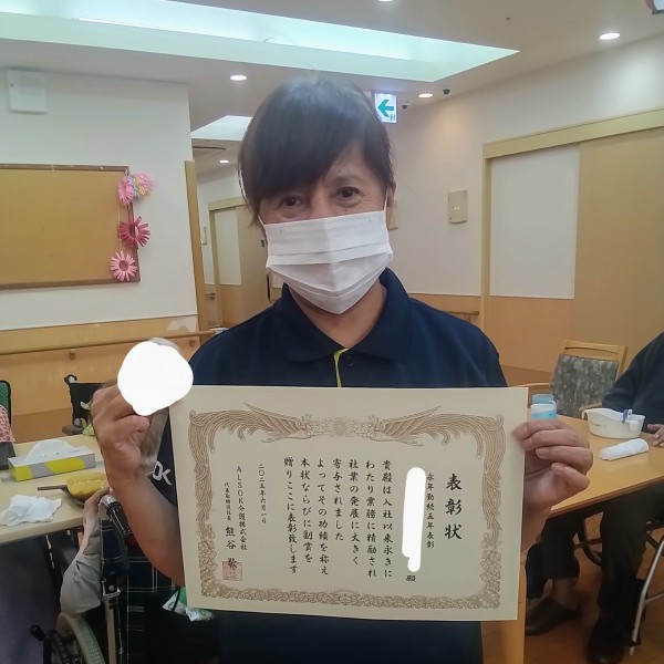 先日、当施設のスタッフの“永年勤続表彰”を