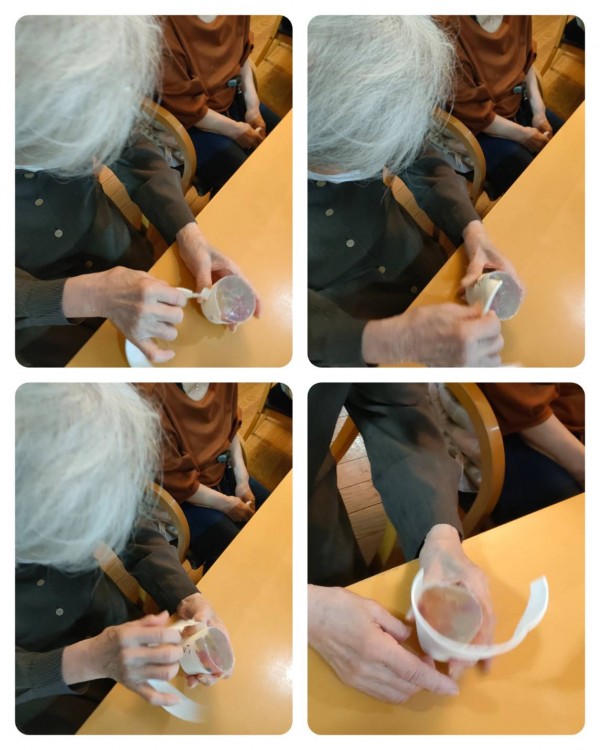 また冷蔵庫で冷やし、紙コップをめくれば...