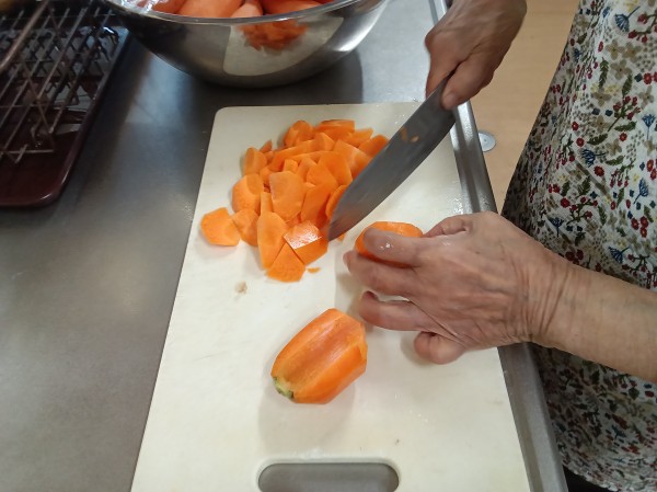 楽しいカレー作りは、普段あまり使用しない包丁を使ったり、大量の野菜をちぎったりして大忙しの皆様でした。