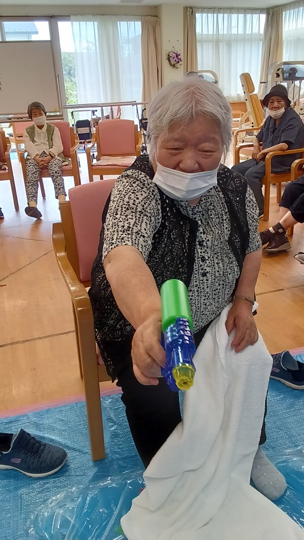 的に目がけ、水鉄砲を