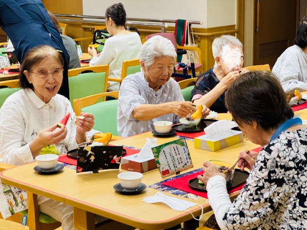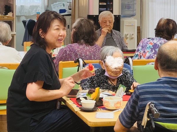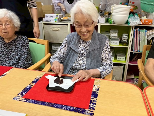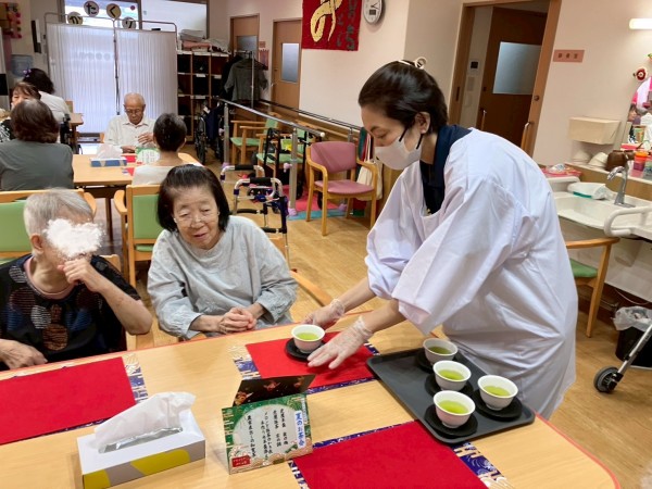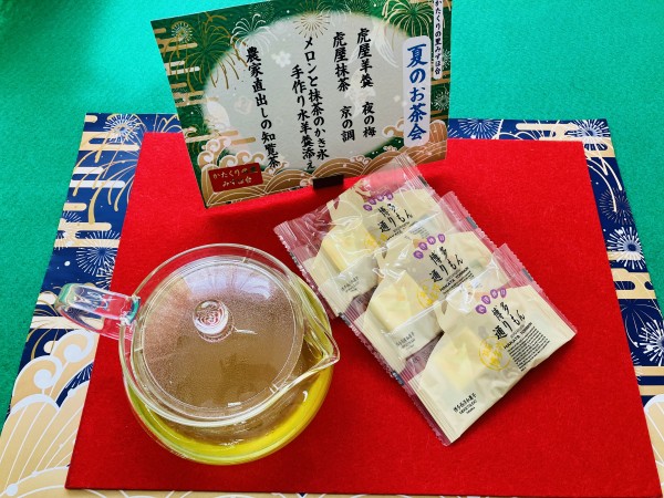 「虎屋の羊羹と抹茶などデイサービスで本格的に味わえるのが本当に素晴らしいですね。どれも美味しくて凄く良かったです。また次回も楽しみだわ〜」