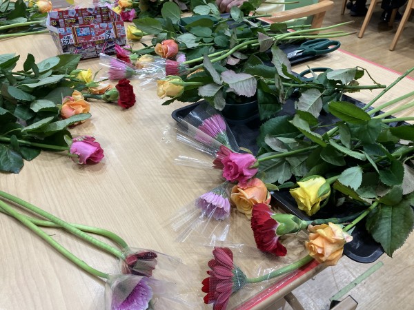夏なのでお花を少しでも長持ちさせるには短く切ること!!とのことで全体的にショートにしてのアレンジメントでした!!
