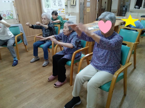 音楽に合わせて体を動かしました。