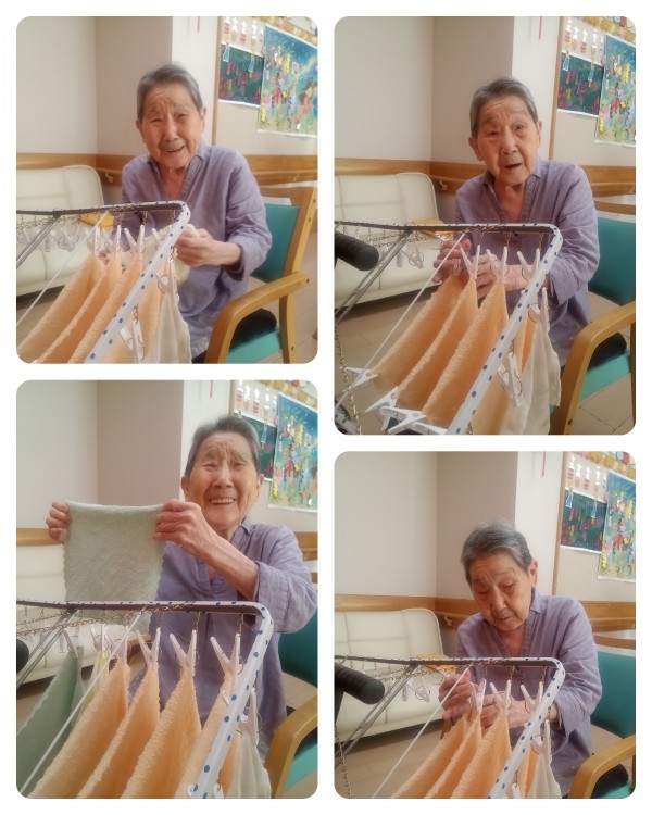 タオル干しをお手伝いして下さりました^^♡柔らかなタオルを一枚ずつ丁寧に広げながら干してくださりました(ू•̤ᗜ•̤❁)*。