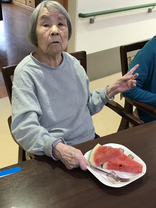 今月はおやつの時間にアイスクリームやスイカをいただきました
