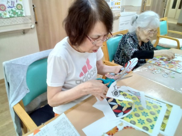 8月のいきいき盆踊りに向けて「花笠」を作成中です。