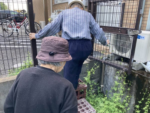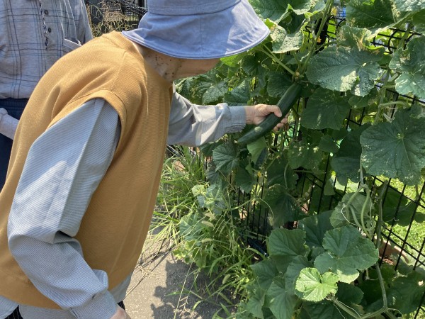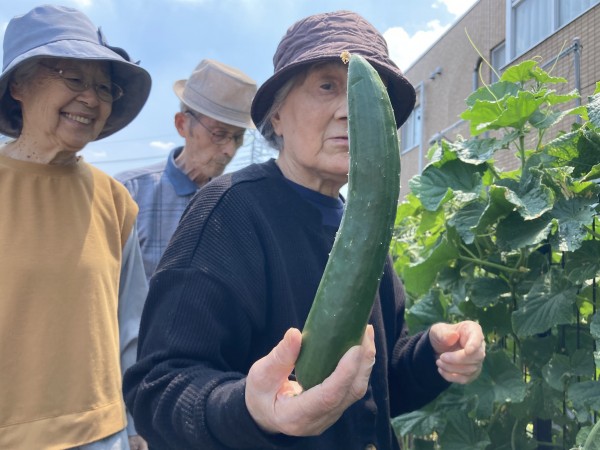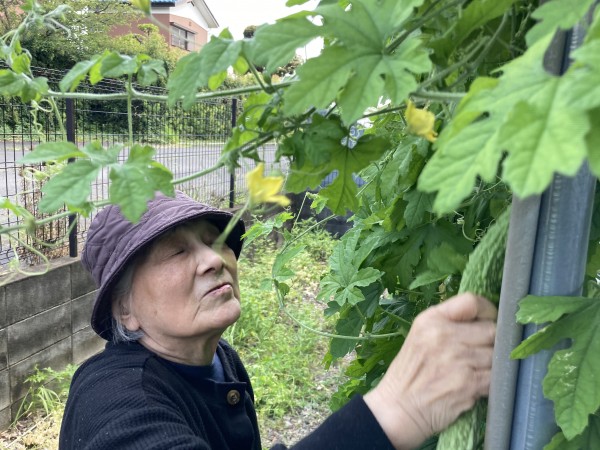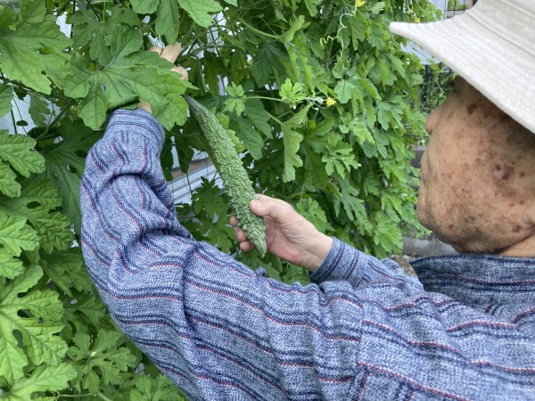 ゴーヤは段差がある箇所にあり、志願してくれた健脚2名がゴーヤも乱獲。「ゴーヤは苦くて河童も食べない」