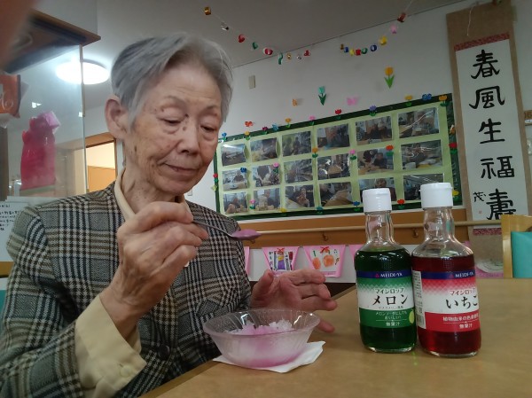 スイカ割を楽しみ、かき氷も、皆さんそれぞれお好きな味で!