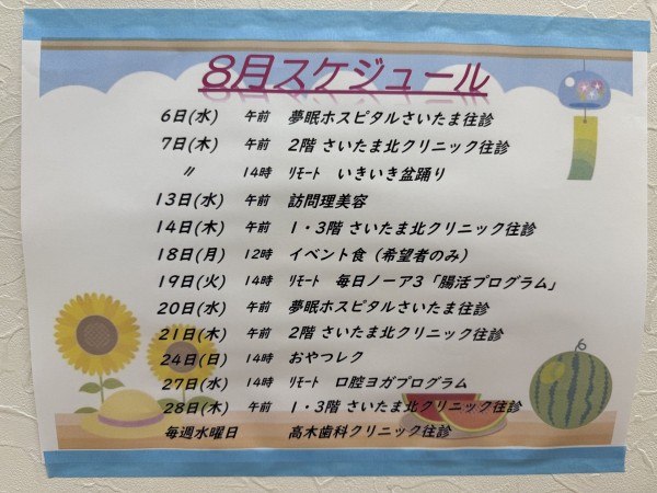 今月のスケジュールを載せますのでご覧下さい。