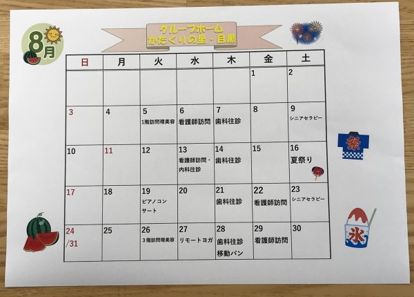 8月の行事予定表が完成しました♬