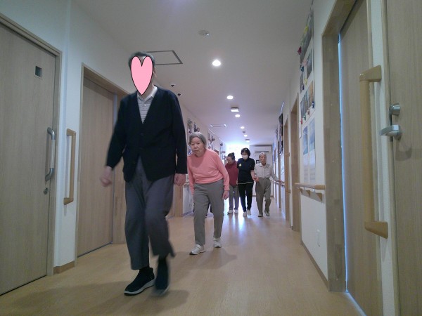 「 イチ、ニ! イチ、ニ!」とリズムに合わせて廊下を歩きます。