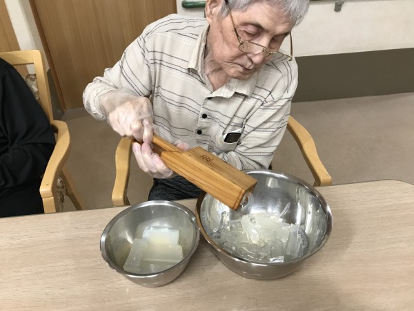 スタッフが手作りおやつに、心太を天草粉か作ってみました(^^♪