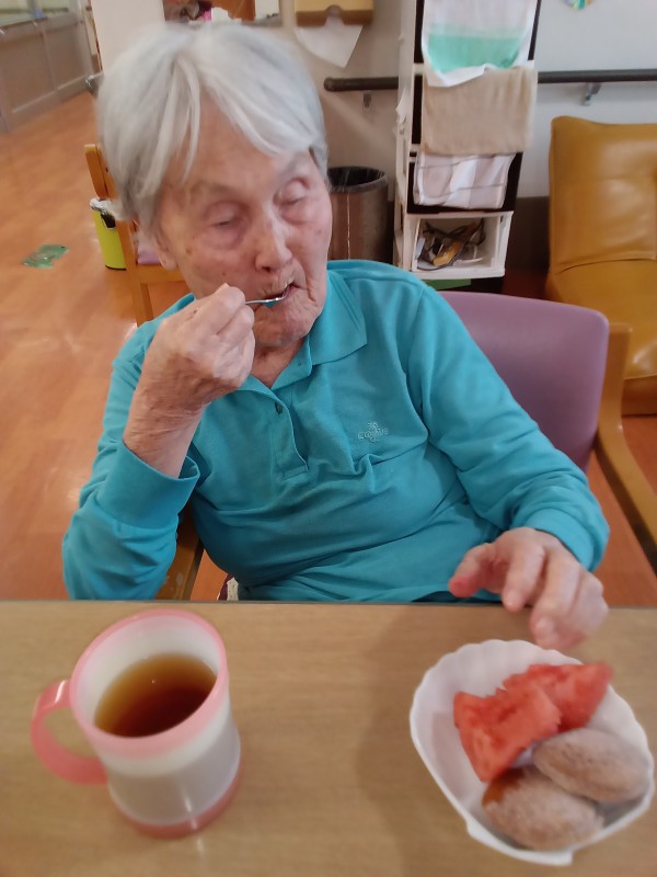 ちなみに、本日のおやつはカステラサンドの日でしたので、スイカとカステラサンドの2つを召し上がって頂きましたよ。