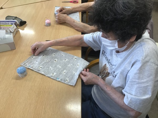 針に糸を通すときは職員がお手伝いしましたが、上手に通せる方もいらっしゃいます。(すごいですね)