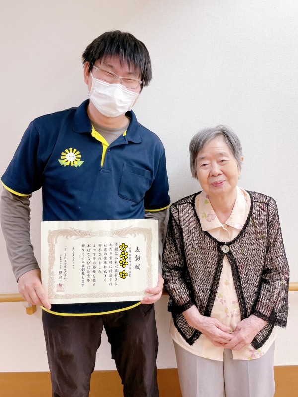 「10年勤めたから表彰されたんですよ~」とY様に伝えると「すごいね~!」とニッコリ(*´ω`*)