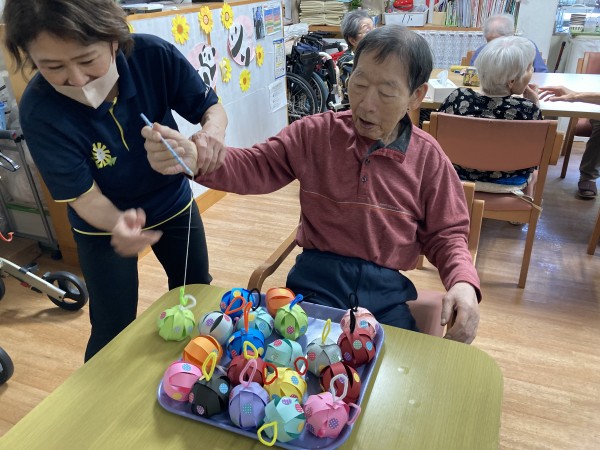 やなかのヨーヨーは職員お手製の紙ヨーヨー