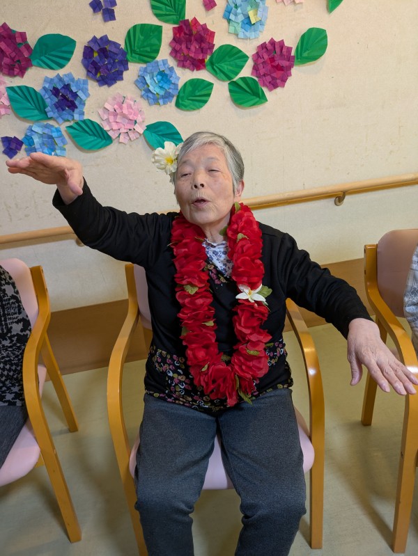 家族会の日、いつも練習している私たちのフラダンスを披露させていただきました。