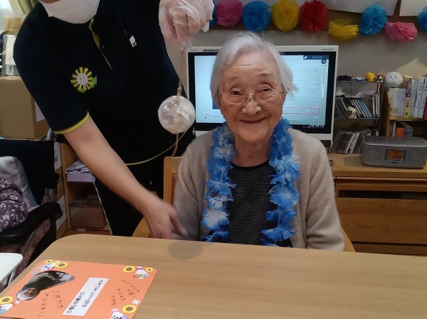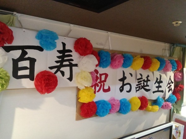グループホームみんなの家・中野鷺宮で8月のお誕生会で「百寿」のお祝い