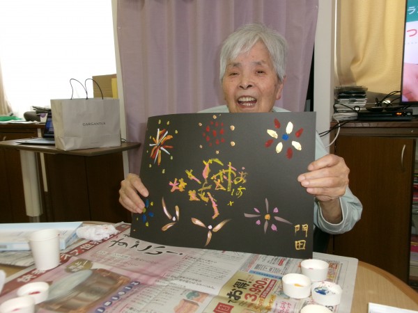 絵の具を使い、花火を描いて頂きました!(^^)!