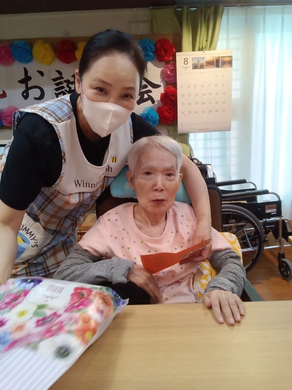 グループホームみんなの家・中野鷺宮で8月のお誕生会で「百寿」のお祝い(2)