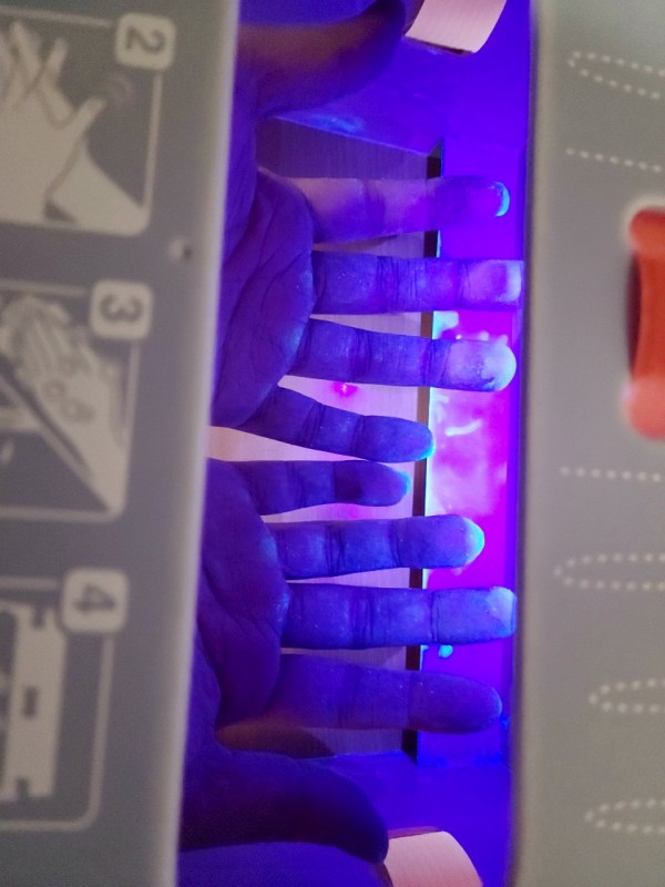 講義前に紫外線で見えるようになる蛍光塗料をの全体に塗布を行ない
