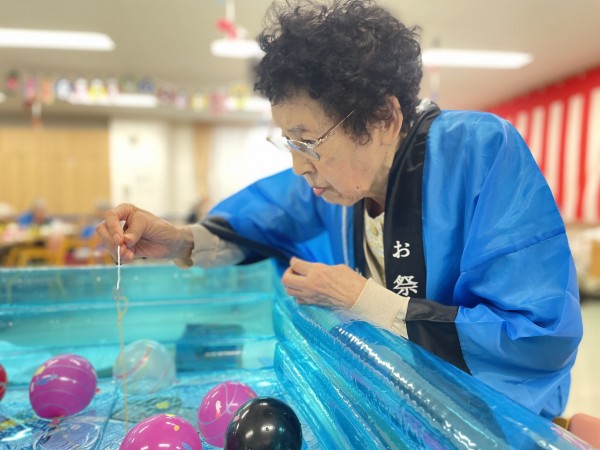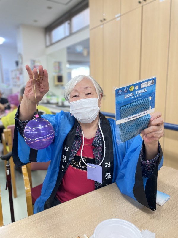 ヨーヨー釣りも気に入った色のヨーヨーを狙い、こよりがちぎれないように気を付けながら釣って頂きました。