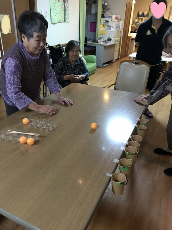 最近おこなったピンポン玉を使ったレクリェーションを3種類ご紹介します!(^^)!