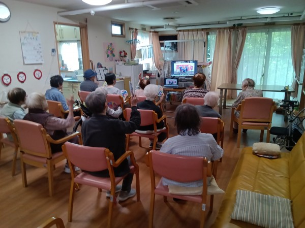 グループホームみんなの家・川崎久地では、リモートいきいき盆踊りに参加をしました。