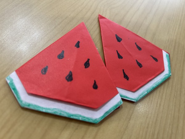 今回は山茶花のみなさまに、折り紙で作った夏らしいスイカをお持ちいただきました!沢山の時間をかけて作って頂いたかと思うと感謝の気持ちでいっぱいです!