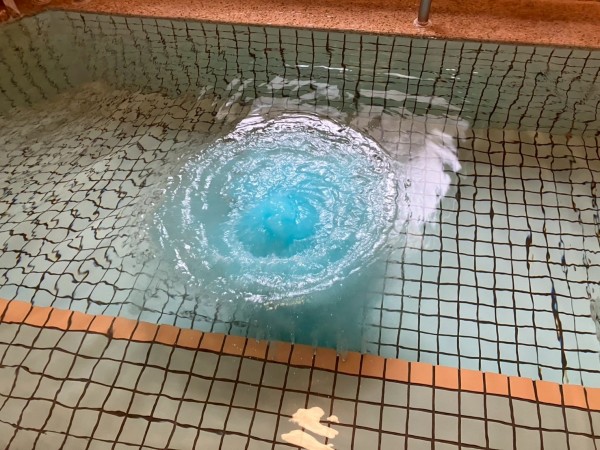 ブルーの温泉の素を入れて夏気分での入浴は格別です‼️
