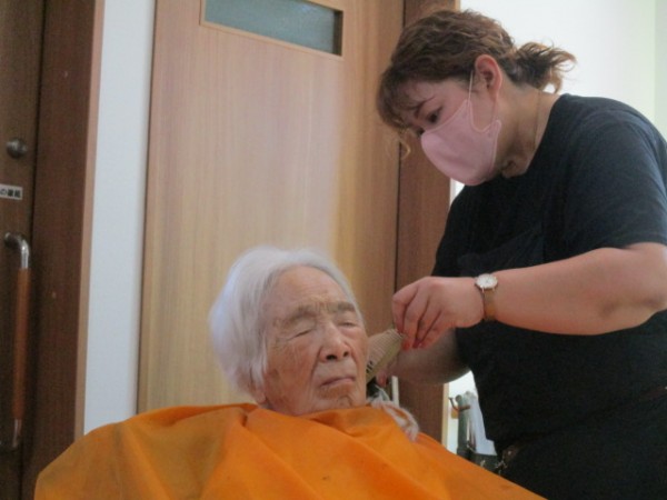 今日は2階で訪問美容の方による髪の毛をカットされる日です。 そのご様子をお知らせいたします!!